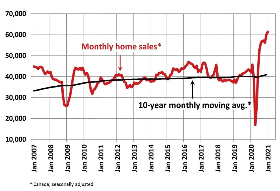 Mặc dù, dịch bệnh vẫn đang hoành hành, gây ảnh hưởng nghiêm trọng đến nền kinh tế nhưng lĩnh vực bất động sản đang bùng nổ chưa từng thấy. Hiệp hội Bất động sản Canada cho biết doanh số trong tháng đã tăng 35,2% so với một năm trước đó - và doanh số trong tháng đầu tiên của năm đã tăng 2% so với tháng 12.